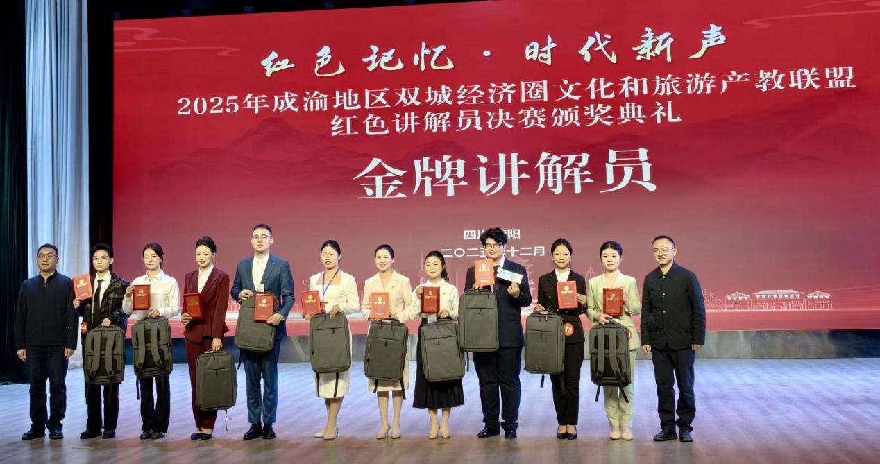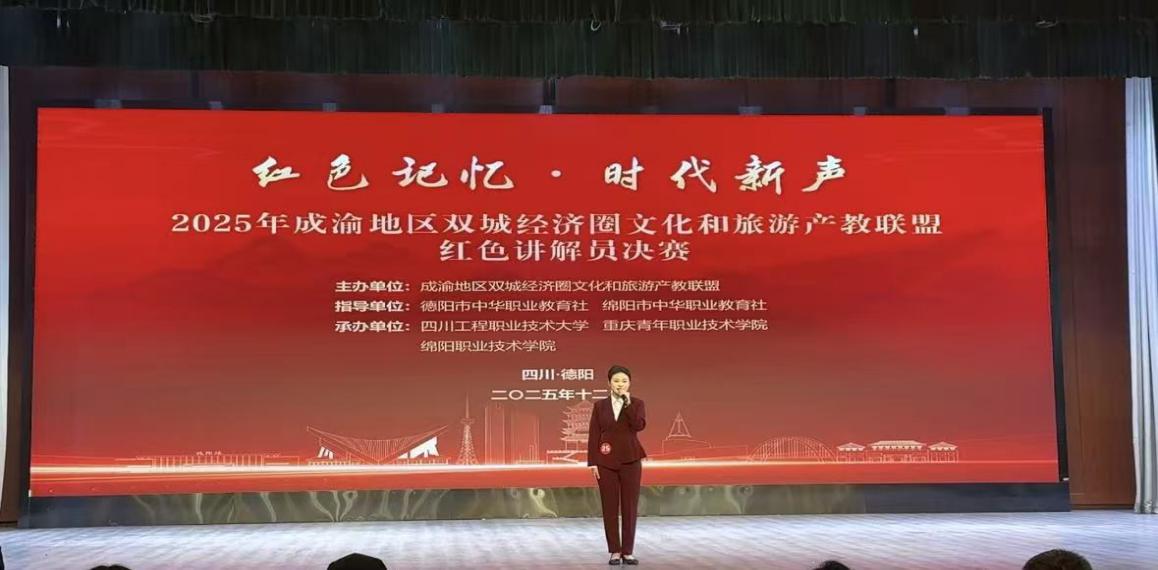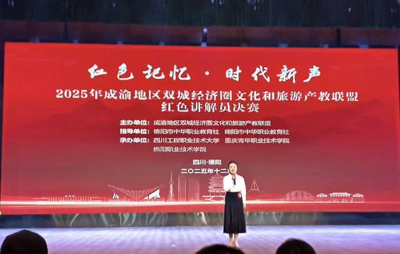 12月19日,以“红色记忆·时代新声”为主题的2025年成渝地区双城经济圈文化和旅游产教联盟红色讲解员大赛在四川省德阳市举行,比赛由成渝地区双城经济圈文化和旅游产教联盟主办,德阳市中华职业教育社、绵阳市中华职业教育社指导,四川工程职业技术大学、重庆青年职业技术学院、绵阳职业技术学院承办。大赛以“把红色资源利用好、把红色传统发扬好、把红色基因传承好”重要指示精神为引领,旨在弘扬红色文化、践行核心价值,引导广大师生和行业人员讲好中国故事、传播时代新声。